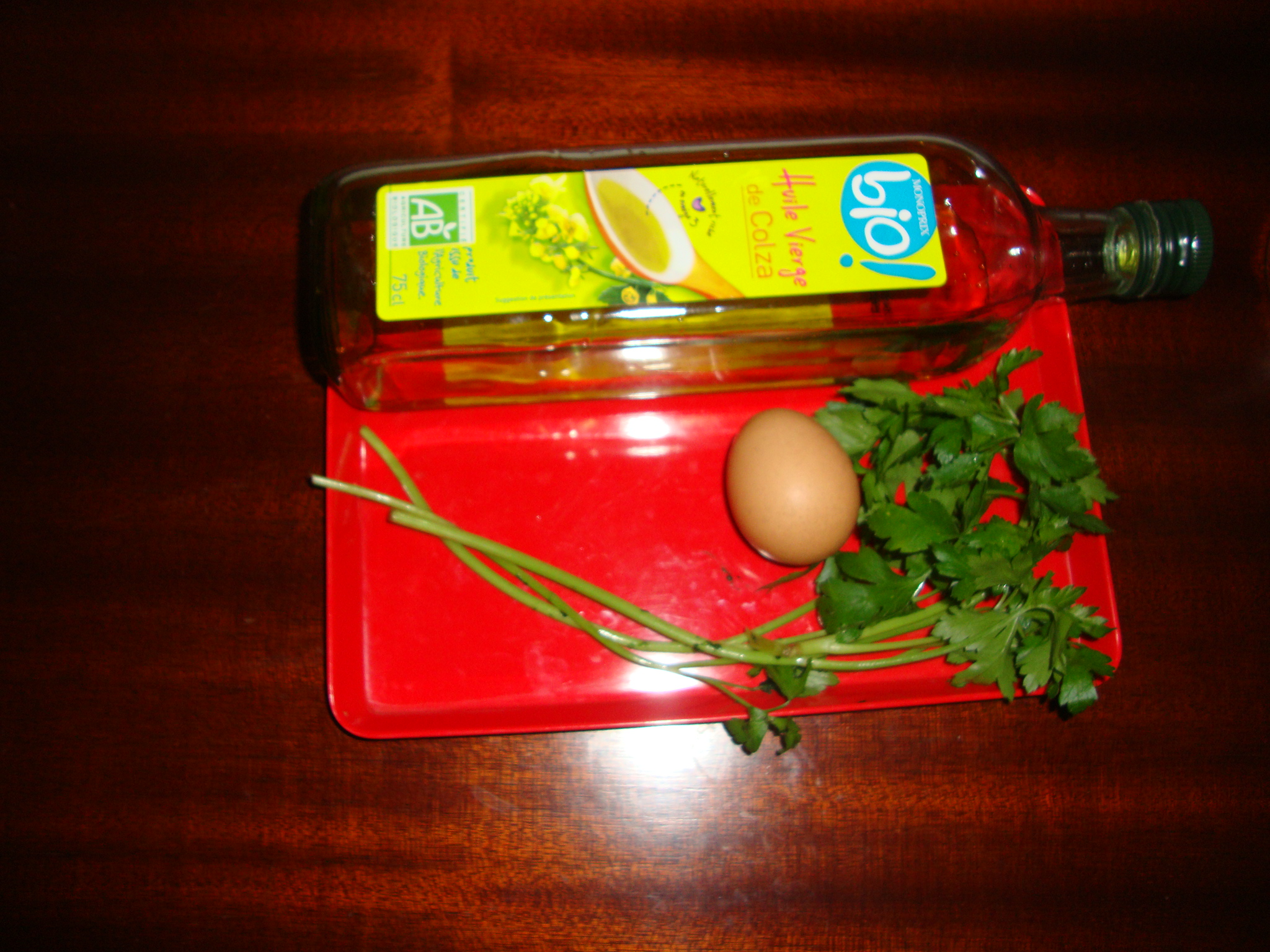 chauffer 4 cuillères à soupe d’huile de colza dans une poêle, faites frire les pommes de terre coupées en dés, à feu vif. Battre les 8 oeufs dans un bol, qqs secondes avec sel et poivre. Une fois cuites, garder les pommes de terre dans la poêle et jetez l’excédent d’huile et salez légèrement les pommes de terre. Ajouter le persil émincé (une bonne poignée) et les oeufs sur les pommes de terre et remettez sur le feu, doux cette fois-ci. Laisser cuire 5 à 7 minutes. Servez-vous d’une assiette plate pour couvrir la poêle et retourner la tortilla afin qu’elle cuise sur l’autre face. Laisser cuite 5 minutes.