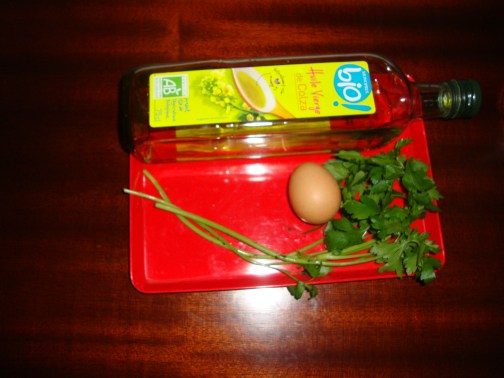 Pour la tortilla :4 pommes de terre moyennes épluchées et coupées en dés, 8 oeufs, 1 botte de persil, 4 cuillères à soupe d’huile de colza